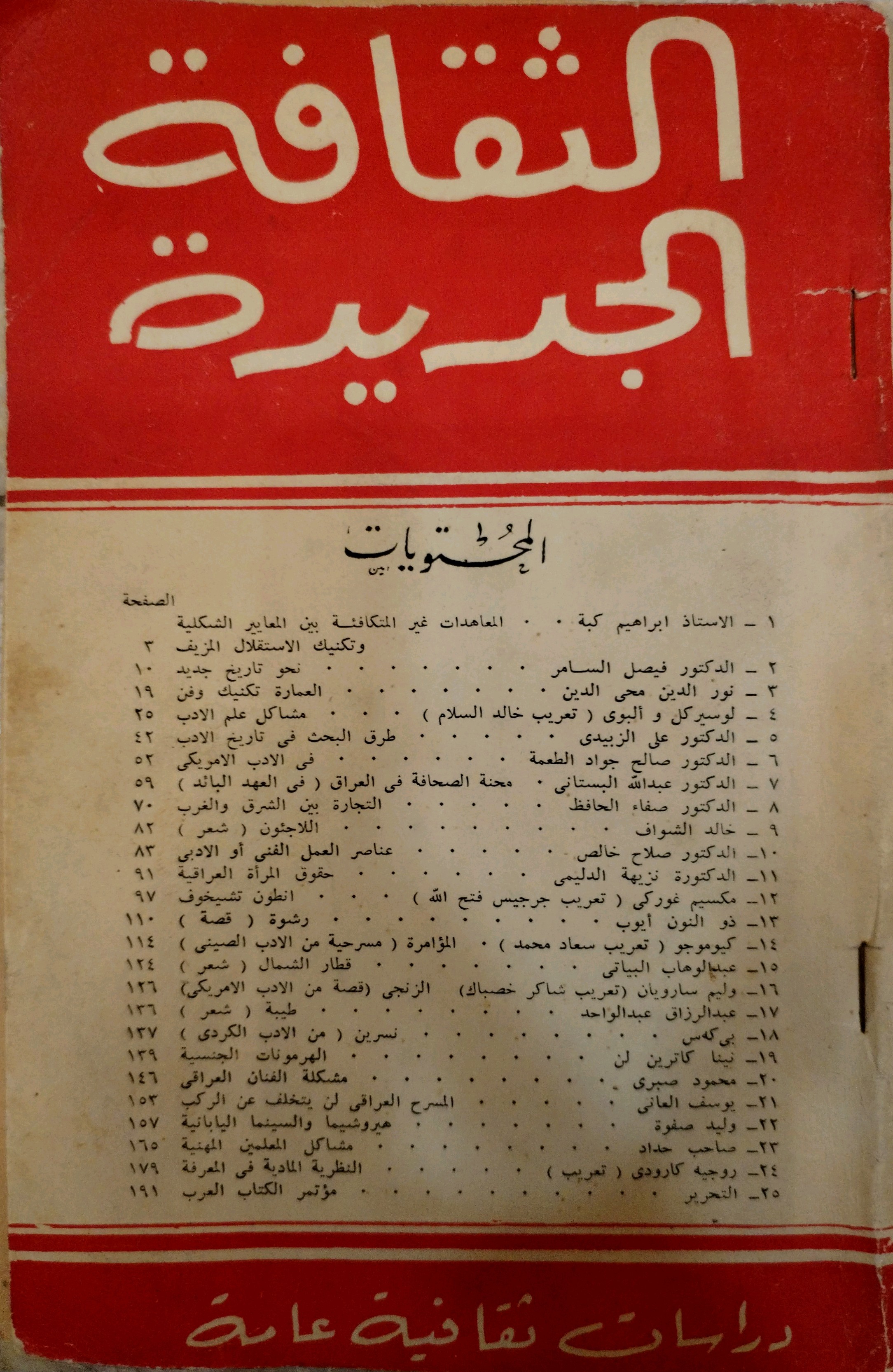 * نشرت هذه المادة في العدد رقم 4 من مجلة (الثقافة الجديدة)، والذي صدر في تموز 1958، بعد أيام قليلة من انبثاق ثورة 14 تموز 1958. مع ملاحظة ان العدد ذاته جاء دون ترقيم (هيئة التحرير)