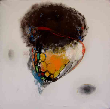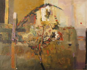 لقد حرص محمد مسير على ان تنطوي لوحته على العناصر التي تحافظ هي الأخرى على توازن مماثل لذلك الذي في منجزه ككل، وكأنما اللوحة هي الكائن الذي يستعيد مراحل تطور النوع في نظرية النشوء والارتقاء، فلم يكن غريبا على الرسام مسير إقامة معرض ينتمي إلى أقصى درجات التعبيرية، ثم يقيم معرضا لا تجد فيه أثرا لمشخّص، فيجمع في ان معا، كل التنوع الأسلوبي في اعماله المنفردة التي تنطوي على العناصر كلها بترتيب يُزحزح، كل مرة بدرجة طفيفة، وان أيا من هذه الأعمال تتشكل من ثلاثة عناصر رئيسة: مسحات من اللون الصافي على مساحة واسعة من اللوحة لا تحتوي أي عنصر آخر، ثم مجموعة من الأشكال الملونة بأشكال تقرب من أشكال المربعات المرصوفة جنب بعضها تتغلغل فيها مجموعة من الخطوط (الشخبطة) واهم هذه الخطوط الشكل المثلث، بينما يمتد العنصر الوحيد الذي يبدو مستمدا من اشكال الواقع ومشخصاته، وهو يقطع اللوحة باتجاه شاقولي، وبلون غامق مقارنة بالألوان الأخرى للوحة، ويبدو هذا المشخص شبيها بكف أو بيد ترتدي كفا من المطاط، واحيانا بدائرة تأخذ مساحة شاسعة من مساحة اللوحة.
