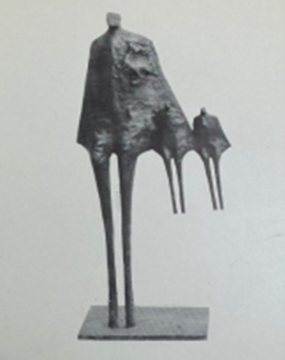 فلاح، او جندي او محترف يبلور انطباعه العام عن الحياة، فلا يجسد اشجارا او اشخاصا او حيوانات معينة بالذات بل يجسد لنا كائنا نهائيا يجمع ما بين صفات عدة كائنات في وقت واحد وتجسيدها جماليا وتعبيريا من خلال قوة التشكيل وانتماء التكوين للمكان والحياة الشعبية.