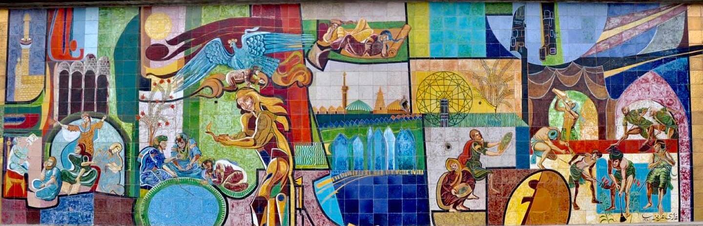جدارياته في مداخل متنزه الزوراء الثلاثة تتضمن موضوعات تتشاكل في العلاقة مع المهمة لوظائفية المكان، حيث أمكنة اللهو واللعب البريء والطفولة ونوازعها التي تقترن بالطبيعة ومكوناتها، الشمس والمآذن والقباب والبساط السحري، علاء الدين والمصباح السحري، ورحلة السندباد، والمبادئ الأُسطورية التي تتيحها الحكايا البغدادية، وما تتضمنه من رموز أُسطورية أشاعتها الثقافة الشفاهية في حكايات الآباء والأجداد، بوصفها جزءاً من أحلام ضائعة تحاول سلطة الخيال استعادتها والتطويح بها مرة ثانية الى الفضاء الإنساني الاستهلاكي، أو إعادة صياغة الواقع المعيش والمعاصر على أساس الحلم. لذلك ستكون سيرة المدينة هذه ماثلة أمام كل من يمر أمام الجداريات، أو يدخل من بواباتها الواسعة.