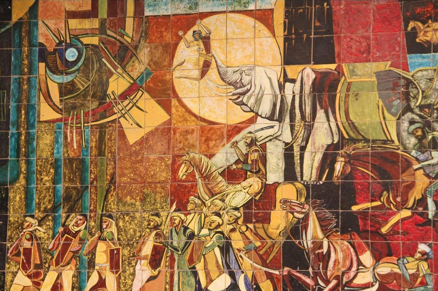 واستطاع أن يوظف في جدارية البوابة الثالثة حكايات الحضارة العراقية العميقة والمُشفرة في ضوء استحضار مفردات حضارية شغلت المدونات البصرية ووثائق التراث مثل (مفردات الفلك، والزقورات، وبوابة عشتار، وغزوات الملوك، وترويض الحيوانات)، ومشاهد مصورة لمرموزات حققت حضورها الحكائي في متن الجدارية لتعزيز الإنتماء الحضاري، تقابلها في الجدارية الأُخرى تجسيدات حكائية ترتبط بخطاب سياسي لاستعراض عسكري بابلي تم تنفيذه ضمن سياقات البيئة باستحضار بنيتي الزمان والمكان، ومشاهد استعراضات الرياضيين، فضلاً عن مشاهد العزف الموسيقي المرافق دوماً للحدث الحكائي.