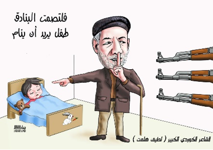 وعلى هامش المعرض أقيم أيضاً، معرض لفن الكاريكاتير للفنان جبار صابر، ضم 60 صورة تعبيرية، وهو فنان من محافظة أربيل، جاء ليقيم معرضه الشخصي السابع، حيث قدم تجربة الكاريكاتير بخطوط تعبيرية إنسانية.. وتنتمي تجربة الفنان جبار، إلى فن (البوستر) السياسي المعروف بتقنيته ورسالته الإنسانية للجميع.. وفي جميع أعماله هنالك رمزيات مشتركة ما بين الشعوب كافة التي تقوم على (حمامة السلام) (وغصن الزيتون) (والأقلام والقرطاسية) ونبذ العنف في كل مكان من العالم.