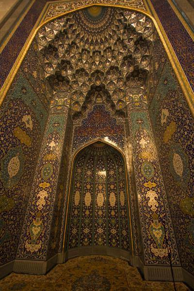 تميز الفضاء الداخلي أو العمارة الداخلية الهائلة للمسجد بالفخامة والسمو، فضلاً عن التعدد الواسع في استعمال واستثمار العناصر الزخرفية والتزيينية من مختلف التراث العربي والإسلامي العالمي، فعندما تتجول في الممرات الداخلية للمسجد وكأنك تنتقل إلى الأقواس أو العقود العباسية في المدرسة المستنصرية والقصر العباسي التي تتميز بشكلها الخاص ونمطها المعروف لتحقق نوعاً من التكامل الجمالي والوظيفي مع الأقواس أو العقود الخارجية.